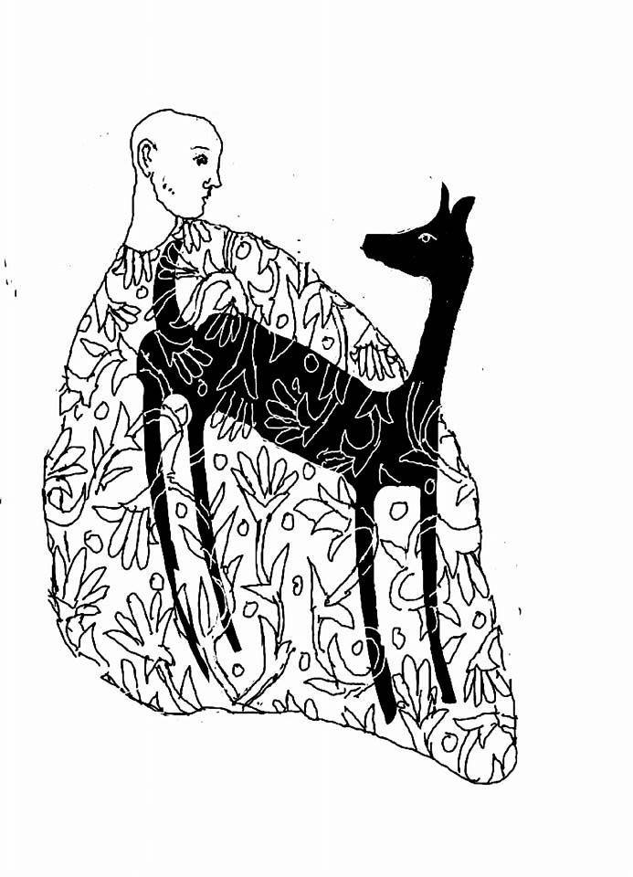 Staring at us from the tangled woods is a massive deer, with a gaze so fierce and maternal, all the hair rises on my body, and I lose my words.